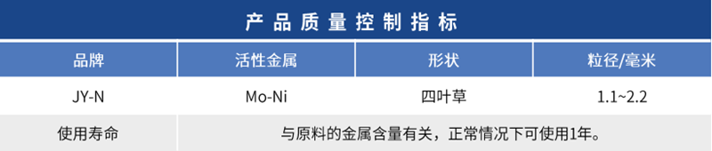 JY-N催化劑是一種重油加氫脫硝催化劑。適用于重油和其他劣質(zhì)餾分油的加氫處理工藝,其主要作用是深度脫除原料油中的硫和殘?zhí)浚m度加氫轉(zhuǎn)化。 JY-N催化劑具有芳香飽和、脫碳、脫硫、高脫氮和適度加氫裂化(轉(zhuǎn)化)的功能。